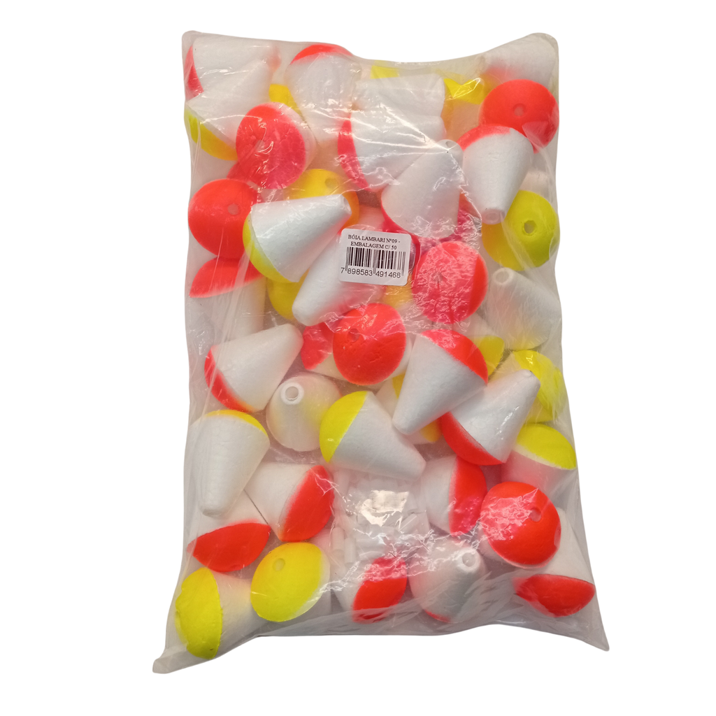 Descrição Bóia Lambari de Isopor, possui pintura luminosa e tem o formato de pião, muito utilizada na pesca tradicional para controlar a altura do anzol dentro da água ou indicar quando o peixe está beliscando a isca ou se já está fisgado no anzol. Ideal para uso em pesqueiros, lagos, rios, represas, mar e outros. Cores variadas. Acompanha Bastão plástico para trava.