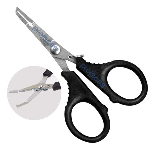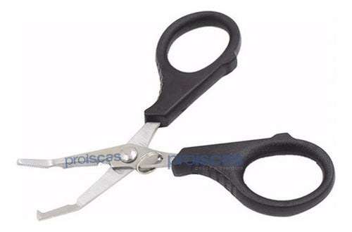 Tesoura multifuncional com função alicate de pesca, leve e confortável de usar, perfeita para corte de multifilamentos, com lâminas serrilhadas em aço inox, que garante uma maior durabilidade.