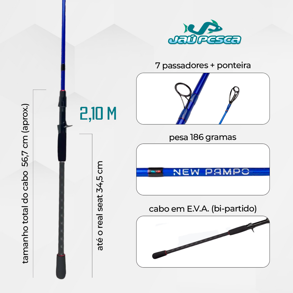 • Comprimento: 2,10m – ideal para longos arremessos em pesqueiros