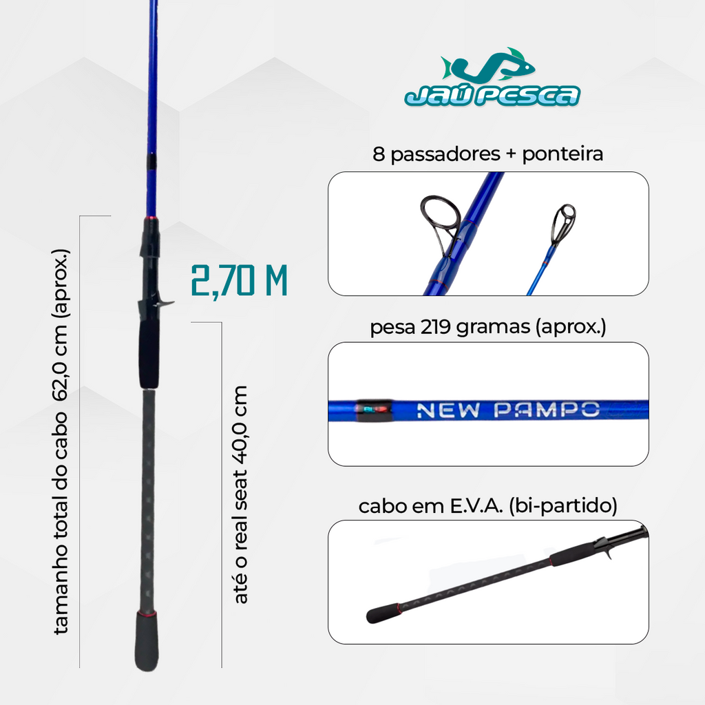 A Vara New Pampo Ilimited é a escolha nº 1 dos pescadores de pesqueiro! Fabricada com blank de carbono de alta qualidade, ela oferece o equilíbrio ideal entre leveza, resistência e potência para enfrentar peixes grandes com conforto e segurança.