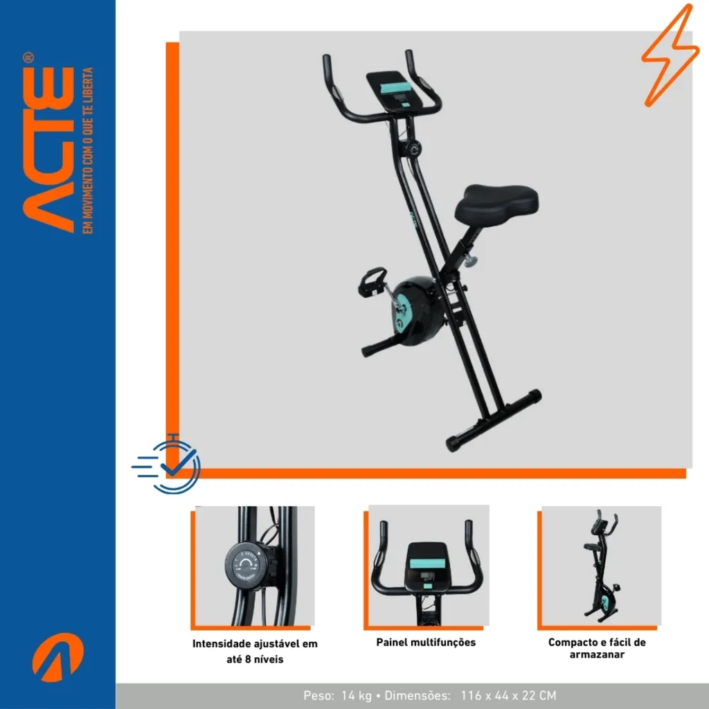 Características: A X-Bike E43 oferece estrutura robusta em aço com ajuste de tensão em 8 níveis. Com suporte para celular e visor digital multifunções, ela combina praticidade e alta performance para exercícios diários, ajustando-se ao seu nível de treino.