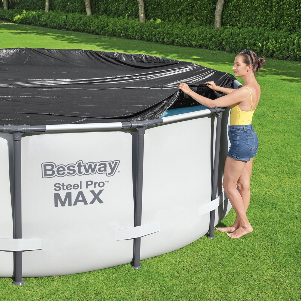 Mantenha a sua piscina limpa por mais tempo e protegida contra sujeira, folhas, detritos e outros resíduos externos com a Capa de Piscina Bestway. Além de conservar a água, ela ajuda a economizar produtos químicos e aumentar a durabilidade da estrutura da piscina.