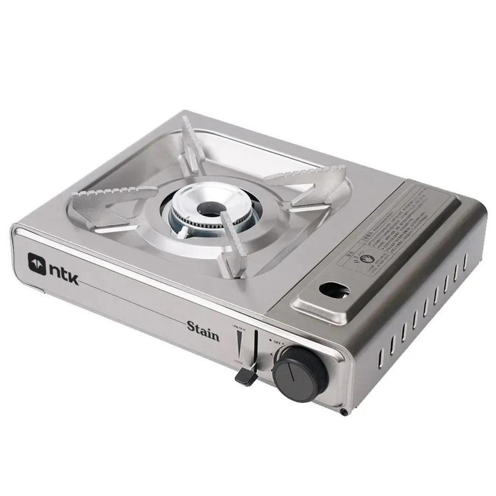 O Fogareiro Stain da NTK é produzido em aço inoxidável, com ignição automática e ajuste fino de chama, garantindo precisão ao cozinhar, além de ser ideal para transporte por ser leve e compacto.